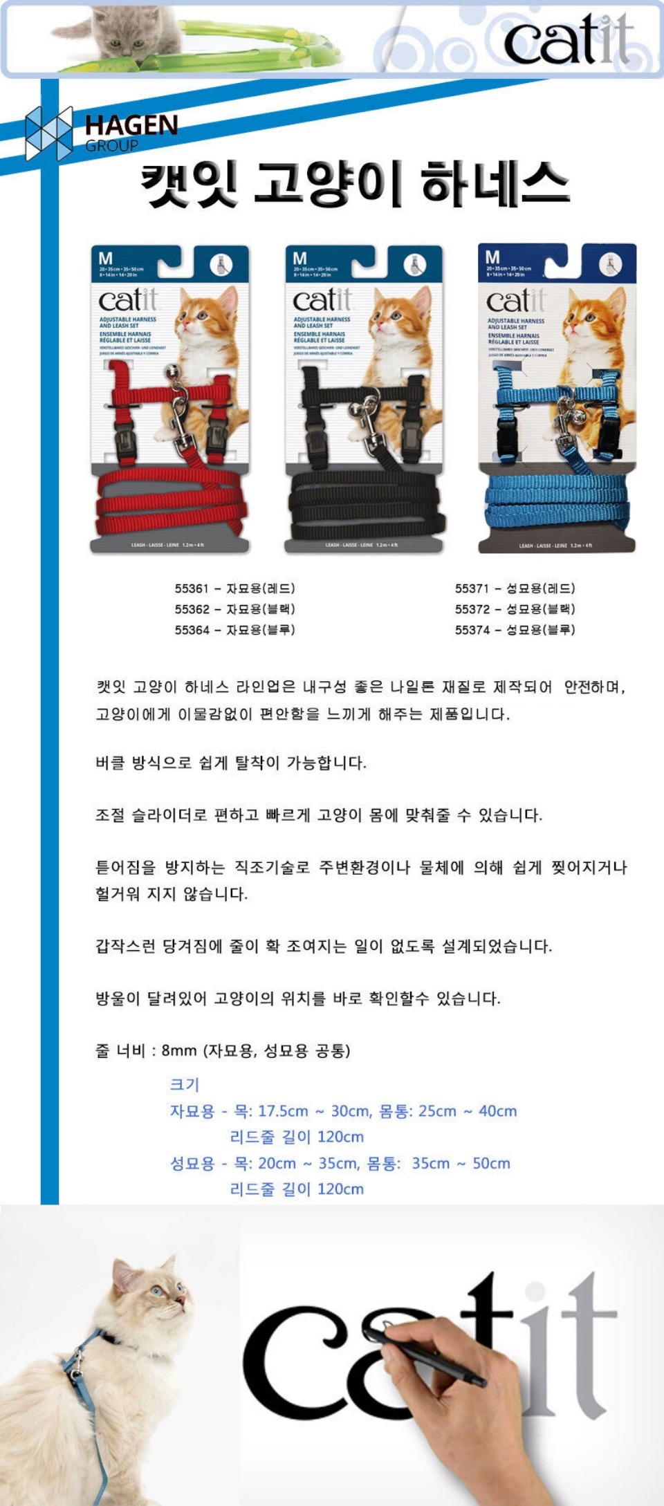 하겐 캣잇 고양이 하네스 성묘용 검정
