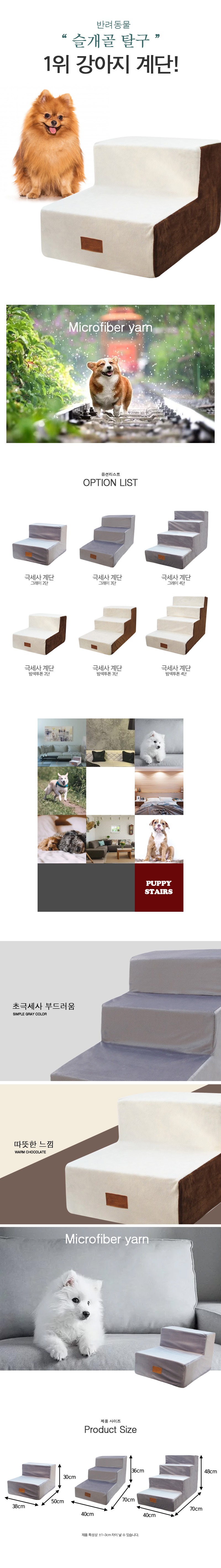 퍼피하우스 극세사 계단 밤색투톤 3단