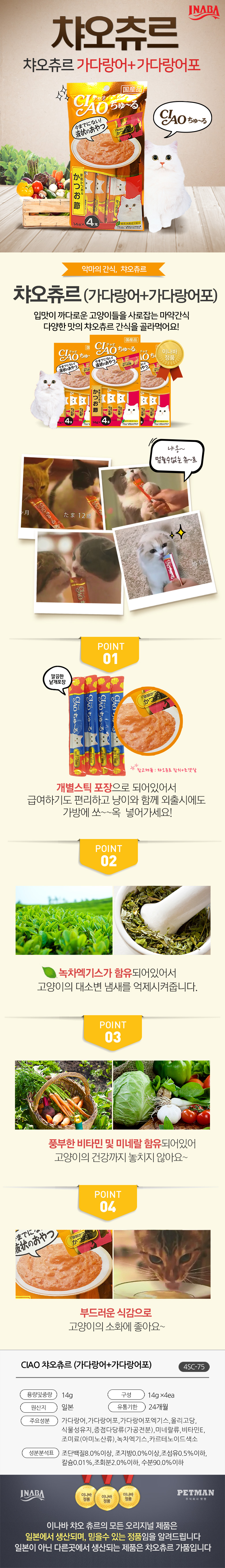 이나바 챠오 츄르 가다랑어 & 가다랑어포 4개입 (4SC-75)