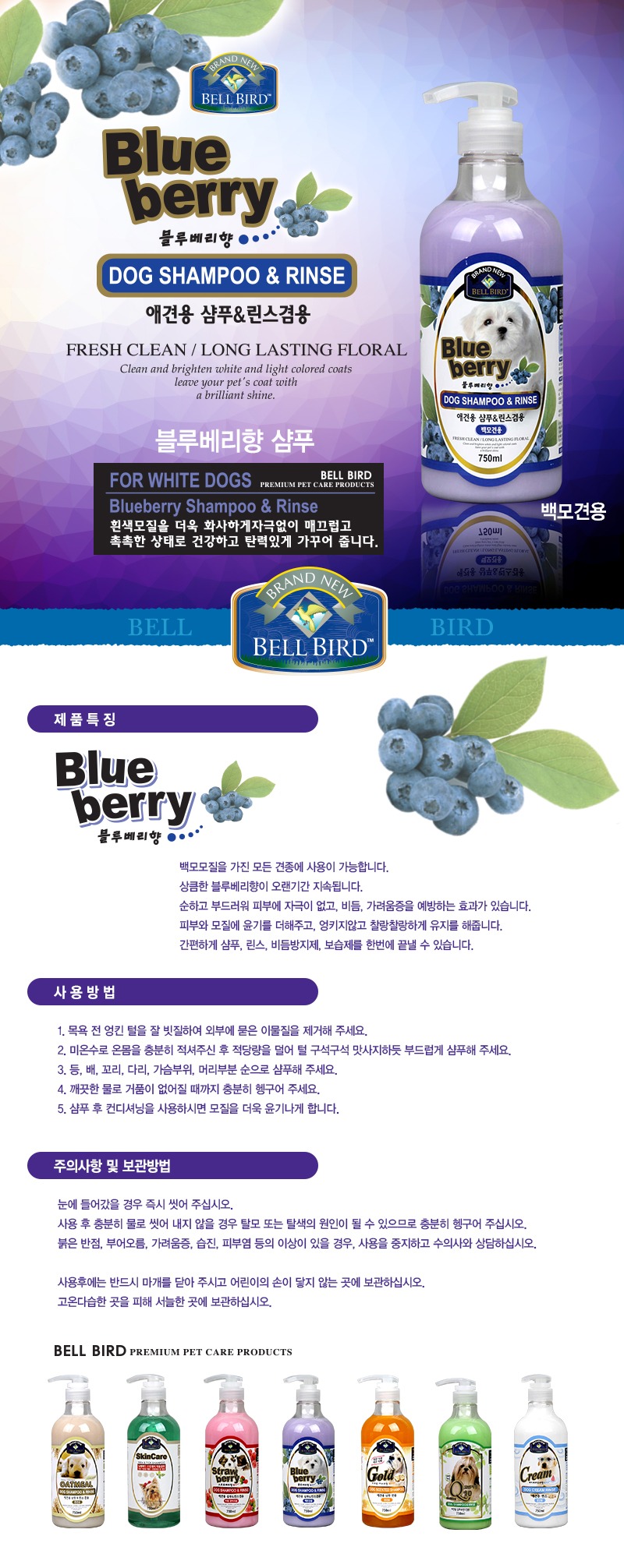 뉴벨버드 블루베리 샴푸린스 백모용 750ml