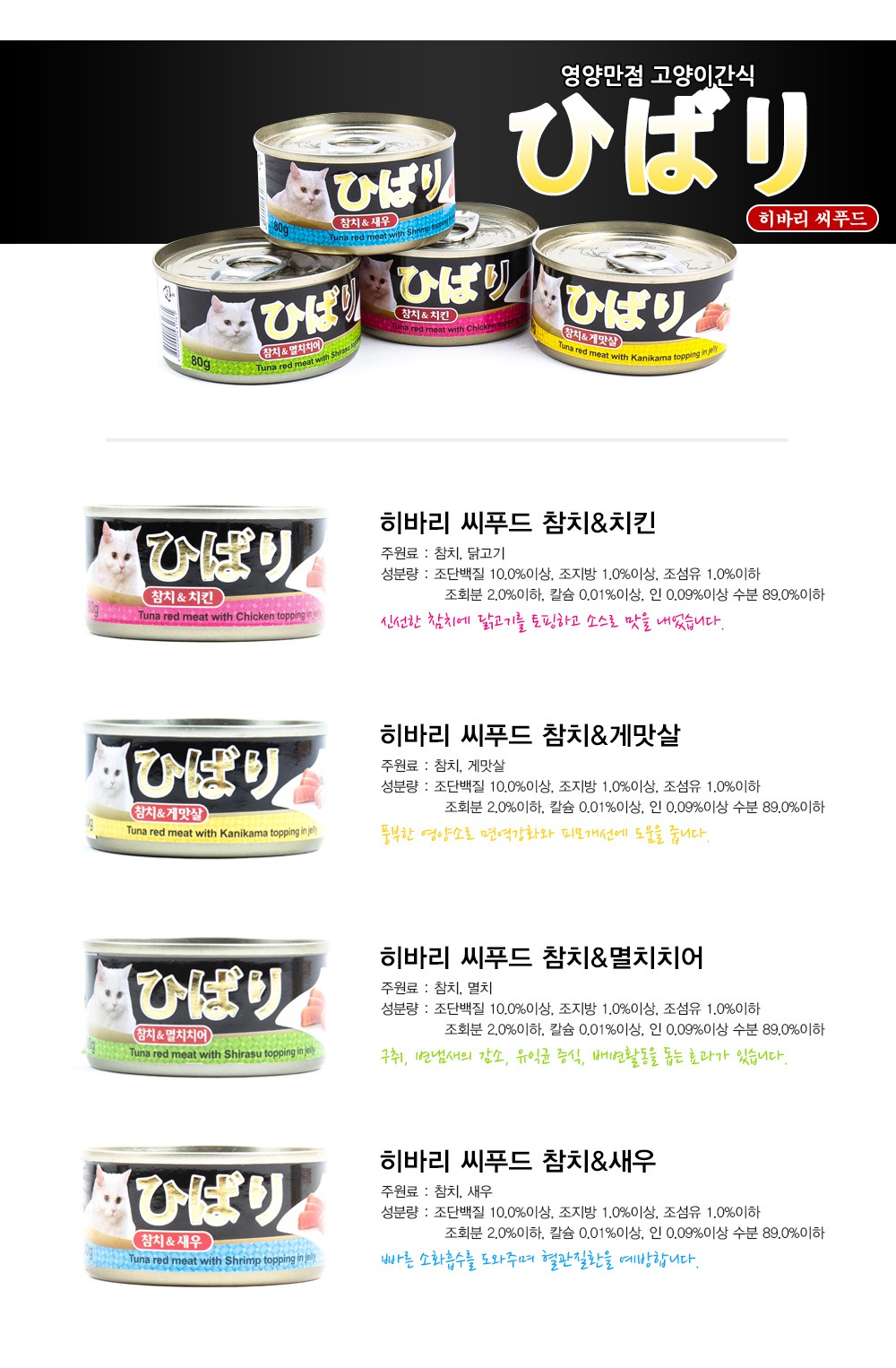 히바리 고양이 참치 & 게맛살캔 80g